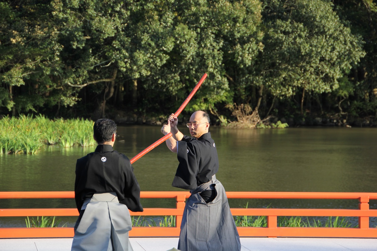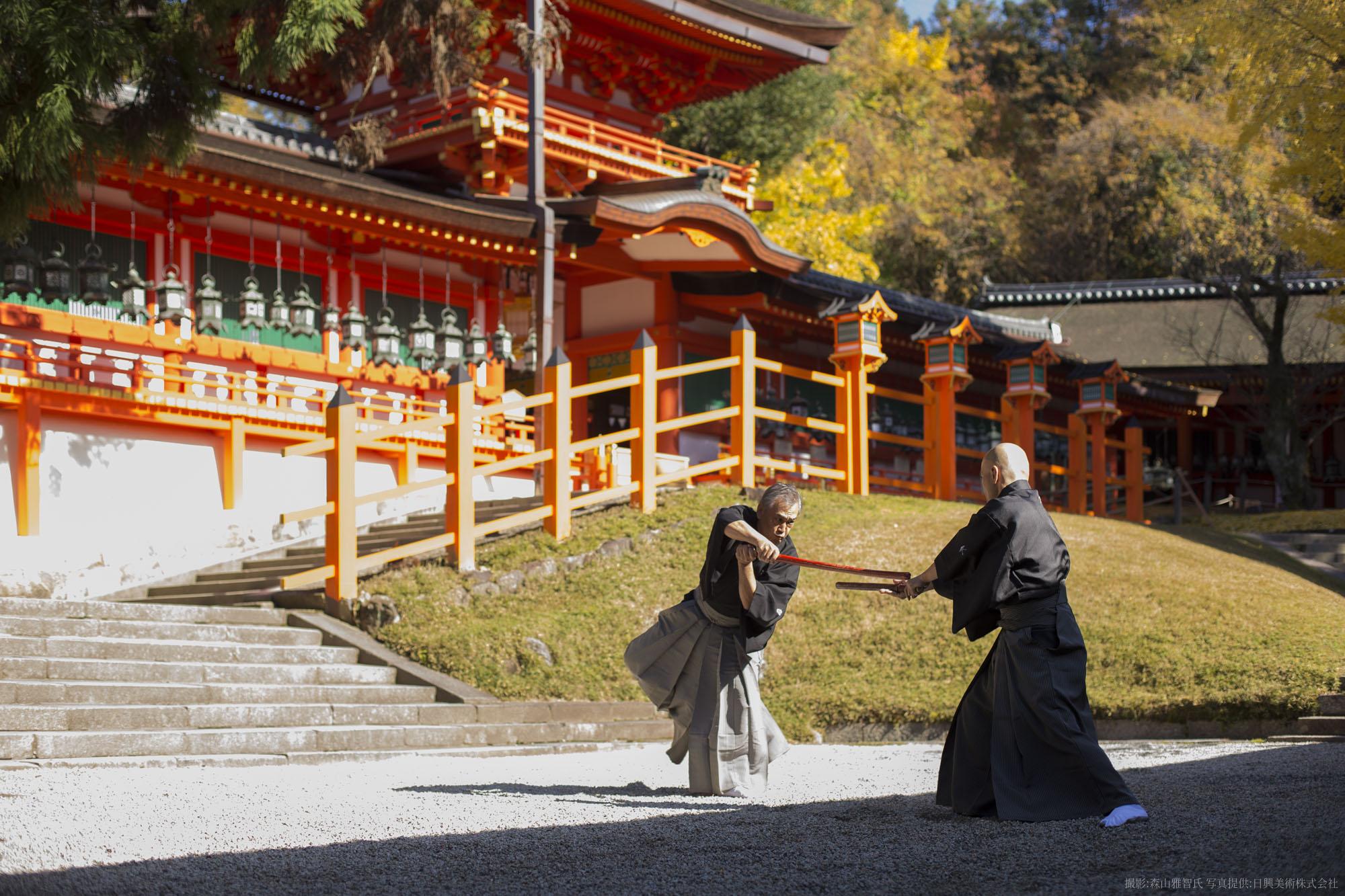金春流 本田光洋師と柳生宗家 杉並能楽堂にて / 撮影:森山雅智氏 写真提供:日興美術株式会社 流祖上泉伊勢守藤原秀綱(のち信綱)に師事した柳生石舟斎宗厳(むねとし)は「無刀の位」を開悟して第二世を継ぎ、その長男厳勝の...